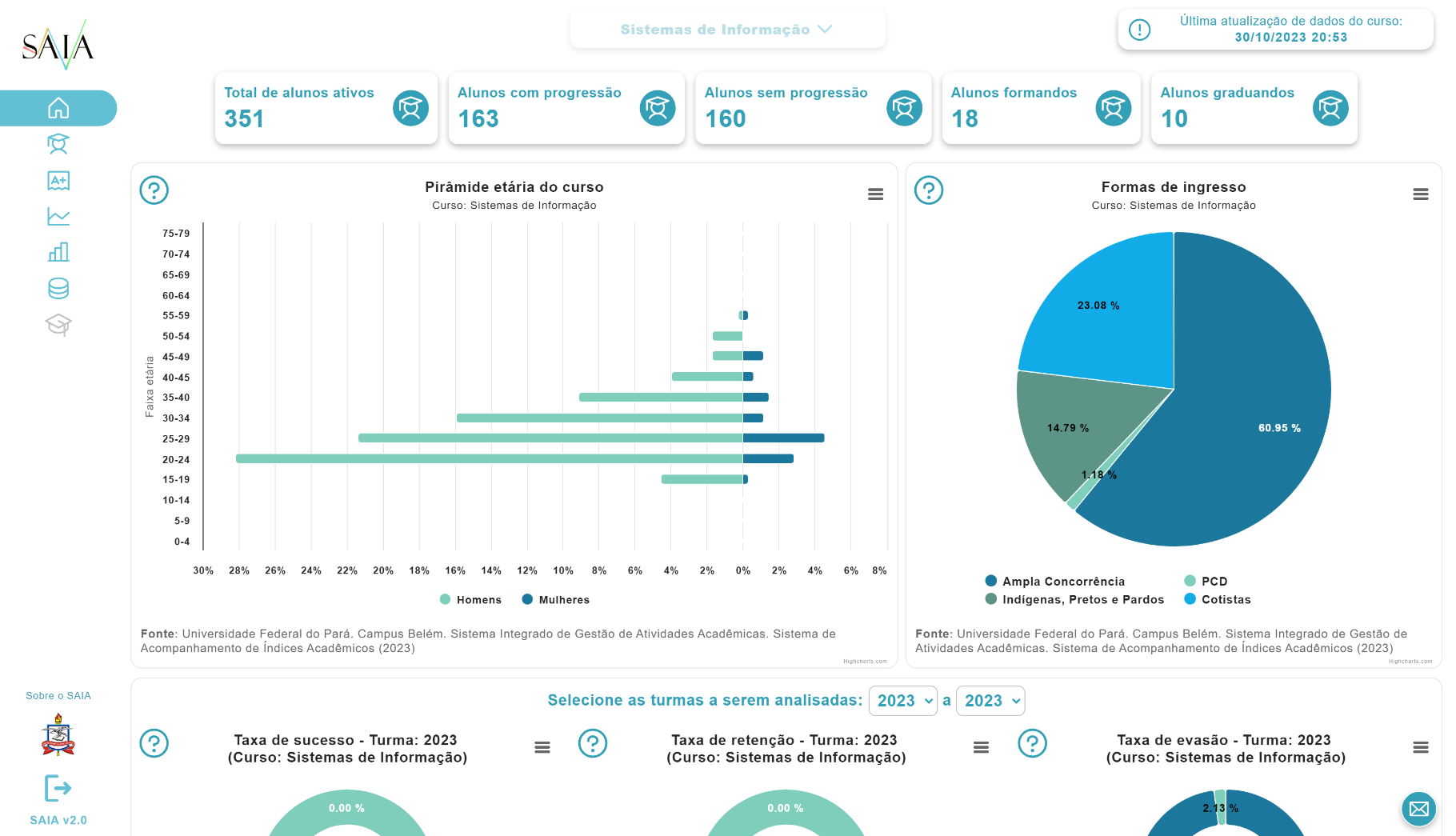 Projeto desenvolvido em Python com React. O SAIA é uma plataforma inovadora que simplifica a gestão acadêmica em universidades públicas brasileiras. Ele automatiza a compilação de dados do SIGAA, permitindo que gestores e secretarias de graduação visualizem e gerem gráficos para tomar decisões mais informadas. Com uma interface intuitiva e baseado na Teoria do Processamento da Informação, o SAIA elimina a necessidade de trabalhos manuais caros e propensos a erros.
